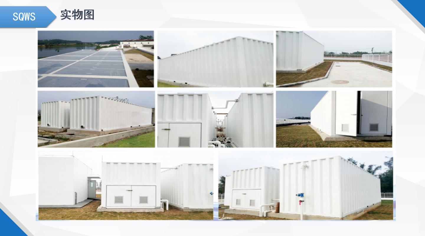 8.太阳能供电,可根据需要设备太阳能发电系统,直接利用太阳能进行污水处理,实现绿色污水处理出水水质可直接用于绿化、冲厕、补充水景,实现污水的就地回收与再利用。